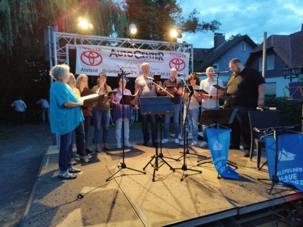 In unserer Heimatstadt Alsfeld ist der Chor ein fester Bestandteil des kulturellen Lebens. Wir engagieren uns für das Stadt- und Heimatfest, veranstalten „Weihnachten auf hoher See“ in der Christkönig Kirche und organisieren das Erlensingen, das durch den Chor wieder neu ins Leben gerufen wurde.
